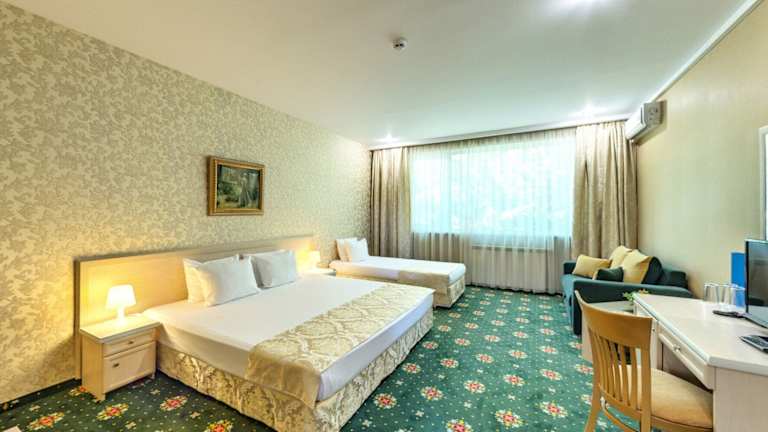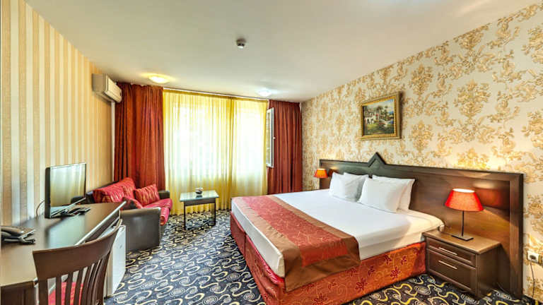 Das Hotelrestaurant mit sonnigem Sommergarten serviert eine Auswahl an bulgarischen und europäischen Spezialitäten. Ein reichhaltiges Frühstücksbuffet sorgt für einen guten Start in den Tag. Zudem gibt es verschiedene gastronomische Einrichtungen, darunter ein Café und eine Bar. Abends wird eine Auswahl an à la carte Gerichten und Menüs angeboten.