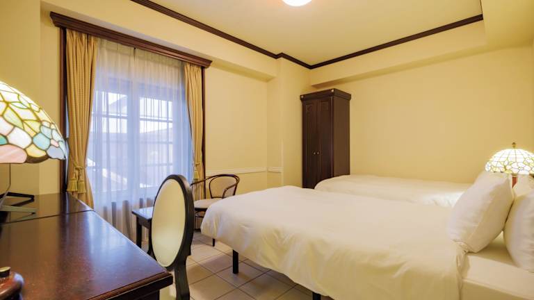 Die Zimmer im Hotel sind geschmackvoll mit antiken Möbeln und Holzfussböden eingerichtet. Jedes Zimmer verfügt über ein Doppelbett, ein Sofabett, eine Minibar, einen Schreibtisch sowie Kommunikations- und Unterhaltungsmöglichkeiten wie einen Fernseher mit Satellitenempfang und gratis Wifi. Die Badezimmer sind mit einer Dusche, einer Badewanne, einem Bidet sowie Kosmetikartikeln ausgestattet. Es sind Nichtraucher- sowie Raucherzimmer buchbar, und rollstuhlgerechte Zimmer stehen ebenfalls zur Verfügung.
