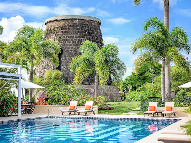 Die gastronomischen Einrichtungen des Resorts umfassen ein Restaurant, einen Speiseraum und mehrere Bars. Die Verpflegungsangebote beinhalten Übernachtung mit Frühstück sowie Halbpension. Gäste können zwischen kontinentalem Frühstück, Buffet oder à la carte speisen. Besondere Diätgerichte sind auf Anfrage erhältlich. Das Restaurant Terrace 750 bietet Speisen im Freien mit Blick auf Charlestown und St. Kitts, während das Mill Privee in einer historischen Zuckermühle untergebracht ist.