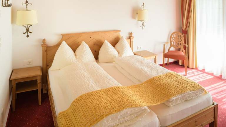 Die Zimmer sind komfortabel mit Balkon und einem Sitzbereich ausgestattet, welcher Kabel-TV umfasst. Jedes Zimmer hat zudem ein eigenes Bad. Einige Zimmer bieten einen unverbauten Blick auf Winkelmatten oder das Matterhorn. Die rustikale Einrichtung umfasst eine holzgetäfelte Decke und massive Deckenbalken aus Holz.