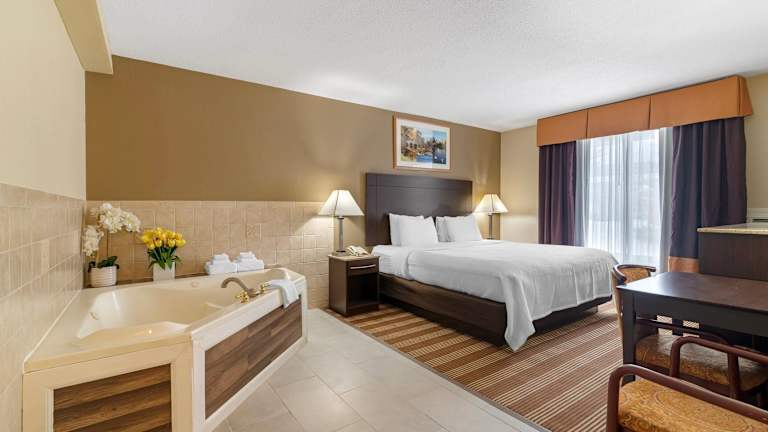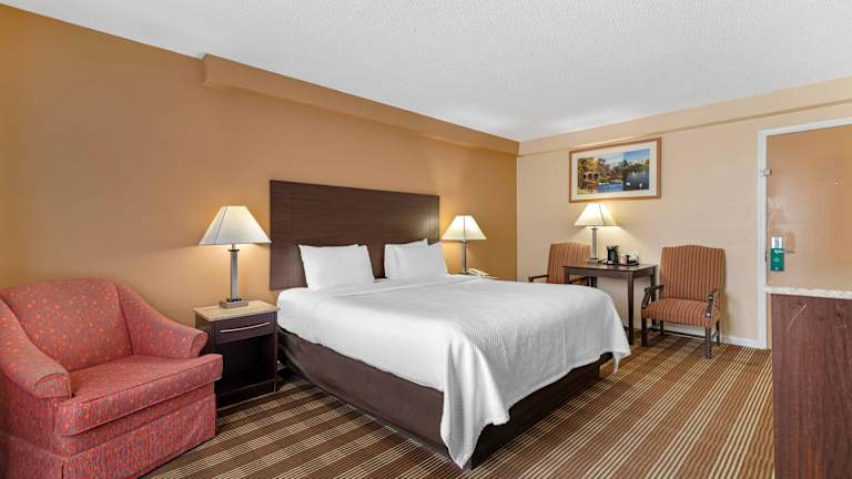 Die Zimmer sind mit Teppichböden ausgestattet und bieten ein Doppelbett, ein Queensize-Bett oder ein Kingsize-Bett. Weitere Annehmlichkeiten sind eine Klimaanlage, ein Kühlschrank, eine Mikrowelle, eine Tee-/Kaffeemaschine sowie ein Schreibtisch. Das Badezimmer verfügt über eine Dusche und eine Badewanne sowie kostenfreie Kosmetikartikel und Handtücher. Zur technischen Ausstattung gehören ein TV-Gerät mit Satelliten-/Kabelempfang, ein Telefon, ein Radio und kostenloses WiFi.