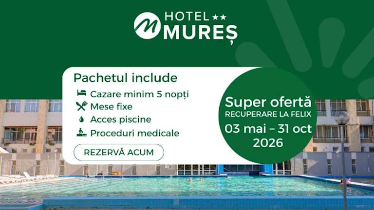 Das Hotel Mures befindet sich in Băile Felix, nur wenige Schritte vom Wald entfernt. Das Wasserpark Strand Apollo-Felix mit seinen 10 öffentlichen Thermalbecken erreicht man in nur 500 Metern. Die Stadt Oradea ist etwa 10 km entfernt, der Flughafen Oradea liegt 15 km vom Hotel entfernt.