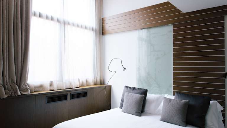 Die Zimmer sind elegant und modern gestaltet mit Annehmlichkeiten wie Klimaanlage, Minibar, Safe, Schreibtisch und einem Flachbild-TV. Die Badezimmer sind mit Regenduschen, Bademänteln und Pflegeprodukten ausgestattet. Einige Zimmer bieten Aussicht auf die Kathedrale von Girona. Zusätzlich stehen rollstuhlgerechte Zimmer zur Verfügung.