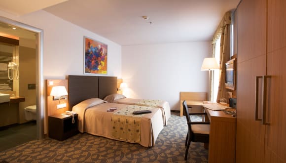 Das Hotel bietet insgesamt 104 Zimmer auf 9 Etagen, die mit einem Aufzug erreichbar sind. Die Zimmer verfügen über eine individuell steuerbare Klimaanlage und Heizung sowie einen Balkon, von dem aus Sie die schöne Aussicht genießen können. Zur Standardausstattung gehören auch ein Safe, eine Minibar, ein Schreibtisch und eine Tee-/Kaffeemaschine. Ein Telefon mit Direktwahl, ein TV-Gerät mit Satelliten-/Kabelempfang, ein Radio und kostenfreies WLAN stehen ebenfalls zur Verfügung. Die Badezimmer sind mit einer Dusche, einer Badewanne, einem Haartrockner und Bademänteln ausgestattet. Rollstuhlgerechte Zimmer mit barrierefreien Bädern sind ebenfalls verfügbar.