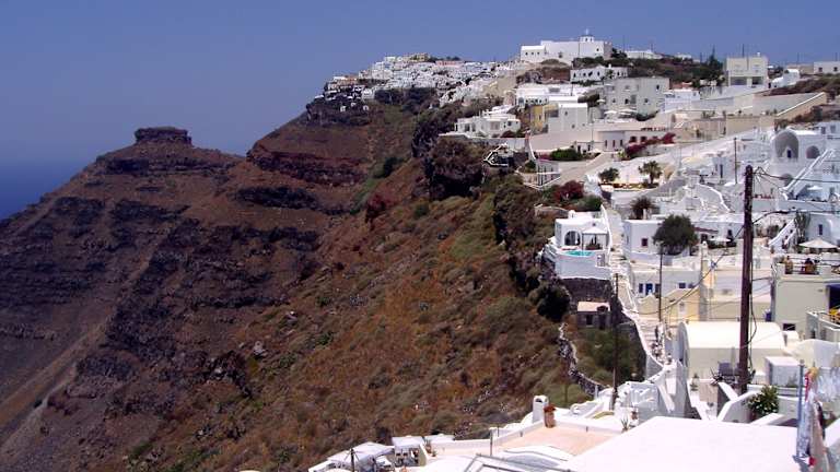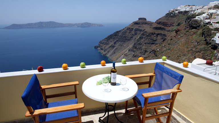 Das Hotel Mylos liegt in Firostefani, einem der renommiertesten und exklusivsten Orte auf Santorin. Die Umgebung überzeugt durch Ruhe, eine malerische Aussicht auf den Vulkan und die Klippen der Calderas sowie mit wunderschönen Sonnenuntergängen. Die Hauptstadt der Insel, Fira, ist in wenigen Gehminuten entlang des Weges zur Caldera erreichbar.