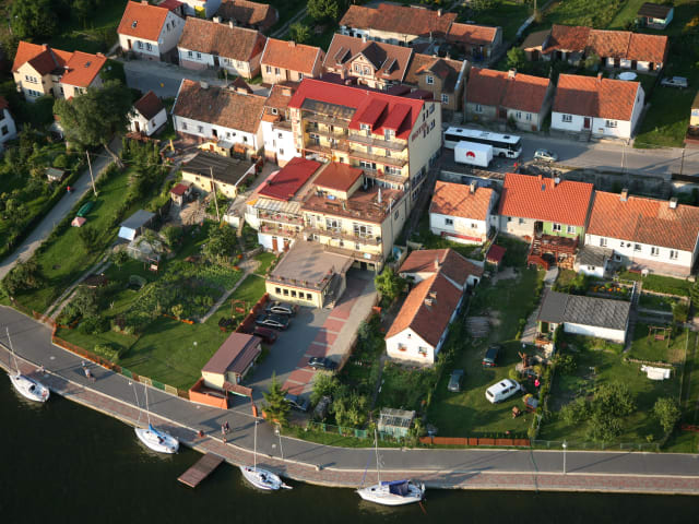 Verbringen Sie einen unvergesslichen Aufenthalt im Hotel Na Skarpie am Ufer des Mikołajskie-Sees. Die pastellfarbenen Zimmer mit kostenfreiem WLAN bieten einen herrlichen Blick auf den See und sorgen für eine angenehme Atmosphäre. Genießen Sie das Frühstück im Restaurant, das sich auf polnische und regionale Küche spezialisiert hat, und erkunden Sie die Umgebung mit dem Hafen von Mikołajki und verschiedenen Attraktionen in der Nähe. Das freundliche Personal steht Ihnen rund um die Uhr zur Verfügung, und Privatparkplätze sind gegen Aufpreis verfügbar.