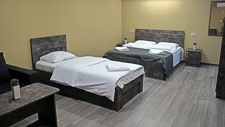 Das Hotel Nabadi befindet sich in Tiflis, etwa 15 km vom Stadtzentrum entfernt. Die Entfernung zum Flughafen beträgt ca. 26 km, während der nächste Bahnhof nur 15 m entfernt liegt. In der Nähe liegen auch ein Golfplatz (ca. 30 km) und Skipisten (ca. 67 km).