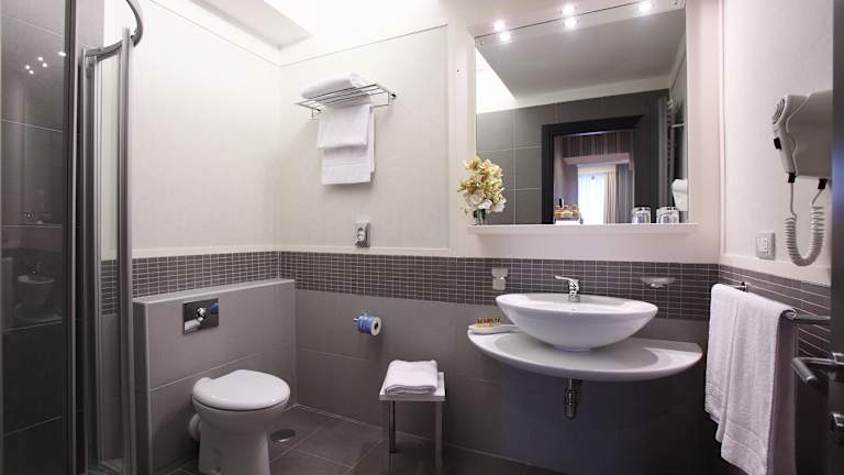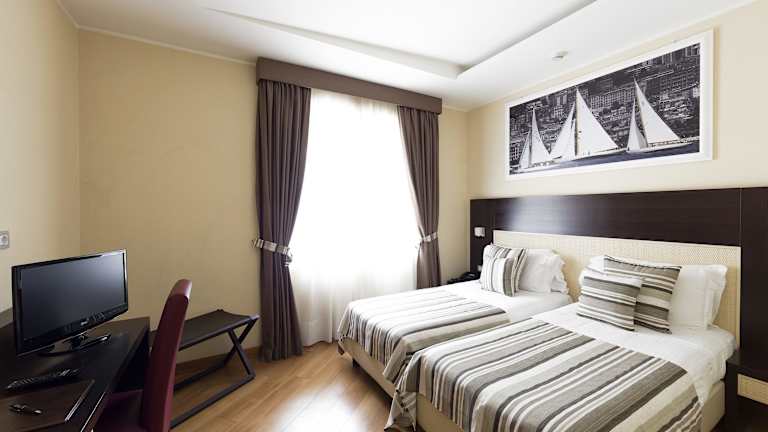 Die Zimmer sind mit Klimaanlage und Heizung ausgestattet, viele verfügen über einen Balkon. Zur Einrichtung gehören ein Queensizebett, ein Sofabett, ein Safe, eine Minibar und ein Schreibtisch. Weiterhin sind ein Bügelset, ein Telefon, Sat-TV, Radio und kostenloses Wifi vorhanden. Die Badezimmer sind mit Dusche und Badewanne sowie kostenfreien Pflegeprodukten und Haartrockner ausgestattet. Familienzimmer und rollstuhlgerechte Zimmer sind ebenfalls buchbar.