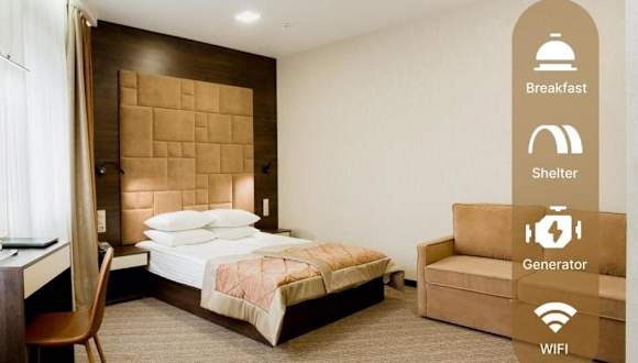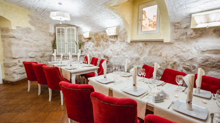 Im Hotel befindet sich das Restaurant Via Regia, welches europäische und ukrainische Küche anbietet. Gäste können in dem Restaurant entspannen und ein Getränk zu sich nehmen. Es besteht die Möglichkeit, Frühstück im Zimmer zu konsumieren, und es werden Lunchpakete angeboten.
