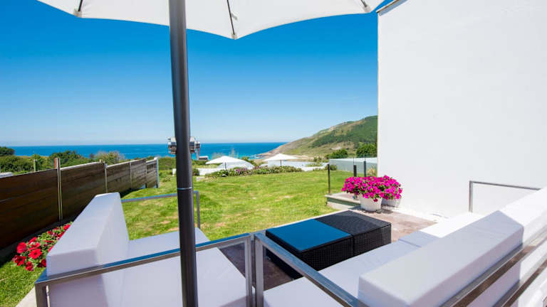 Die modernen Zimmer im Naturaleza Mar da Ardora verfügen über eine möblierte Terrasse mit Meerblick, kostenloses WLAN, einen Flachbild-TV und ein eigenes Bad mit Hydromassage-Dusche.
