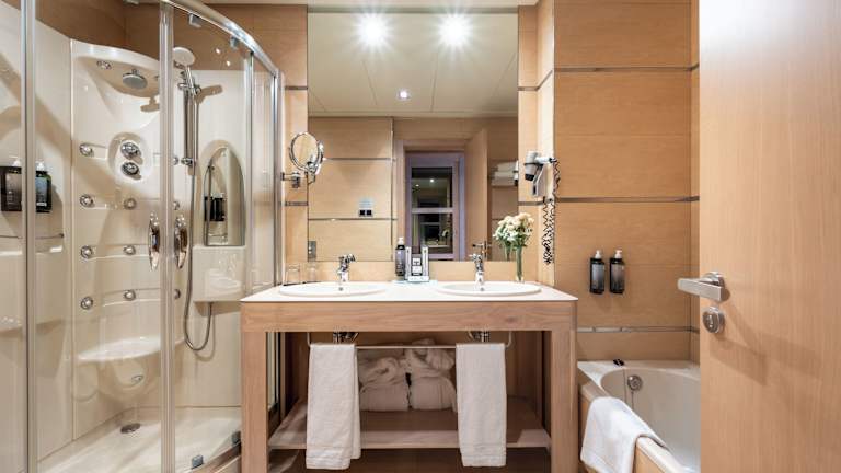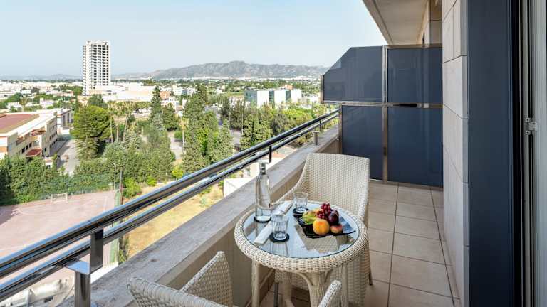 Die Zimmer sind modern und komfortabel eingerichtet mit Klimaanlage, individuell steuerbarer Heizung, und in vielen Zimmern einem Balkon. Sie verfügen über Teppichboden, ein Kingsizebett, Minibar, Schreibtisch, Telefon mit Direktwahl, TV-Gerät mit internationalen Programmen und kostenloses Wifi. Badezimmer sind mit Dusche, Badewanne und Kosmetikartikeln ausgestattet, und es stehen auch rollstuhlgerechte Zimmer zur Verfügung.