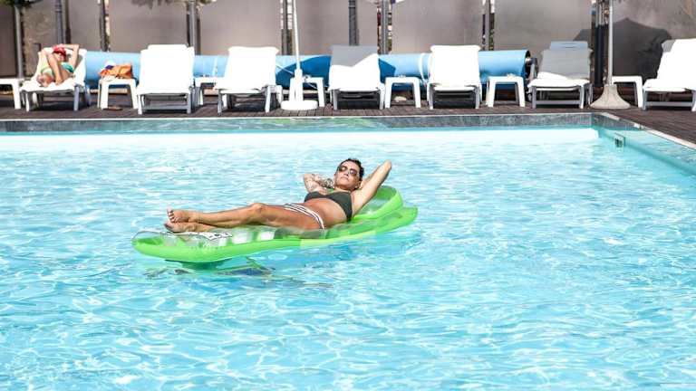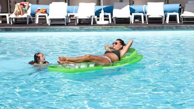 Die Außenpoolanlage bietet Möglichkeiten zur aktiven Erholung, während auf der Terrasse Liegen für die Sonnenentspannung bereitstehen. Ein Whirlpool ergänzt die Badeeinrichtungen. Für sportliche Aktivitäten stehen Reiten, Angebote im Spa-Bereich sowie Sauna und Massage-Anwendungen zur Verfügung. Darüber hinaus können Fahrräder ausgeliehen werden.