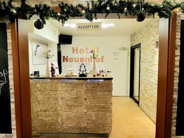 Im Hotel Neuenhof wird ein kostenloses Frühstücksbuffet angeboten, das täglich von 07:00 Uhr bis 09:00 Uhr serviert wird. Es gibt auch eine Bar/Lounge, in der Sie Ihren Tag bei einem Drink ausklingen lassen können.
