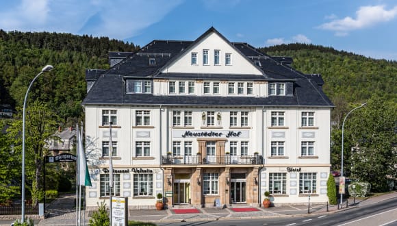 Im malerischen und immergrünen Erzgebirge liegt das idyllische Städtchen Schwarzenberg, die Perle des Erzgebirges. Dort nennt das 4 **** – Hotel „Neustädter Hof“ sein zu Hause. Direkt am Flüsschen Schwarzwasser gelegen. Mit mehr als 30 km Länge durchquert dieses Flüsschen das Gebirge von Tschechien kommend und dem Fichtelberg entspringend. Genießen Sie am Tor zum Fichtelberg und unweit der Grenze zu Tschechien wunderschöne Landschaften, kulturelle Attraktionen, vielfältige Freizeitmöglichkeiten und lassen Sie einfach mal die Seele baumeln. Ob sie nun alleine, zu zweit, mit der ganzen Familie oder mit guten Freunden einen Urlaub verbringen wollen - wir sorgen für Ihr Wohl und bescheren Ihnen in unserem Hotel eine schöne Zeit. Buchen Sie ein Rund – um – Sorglos Paket bei uns oder einfach nur eine Übernachtung. Was immer Ihnen am Herzen liegt, lassen Sie uns es wissen. Wir freuen uns auf Sie - jederzeit & von ganzem Herzen! Ihr Hotel Neustädter Hof
