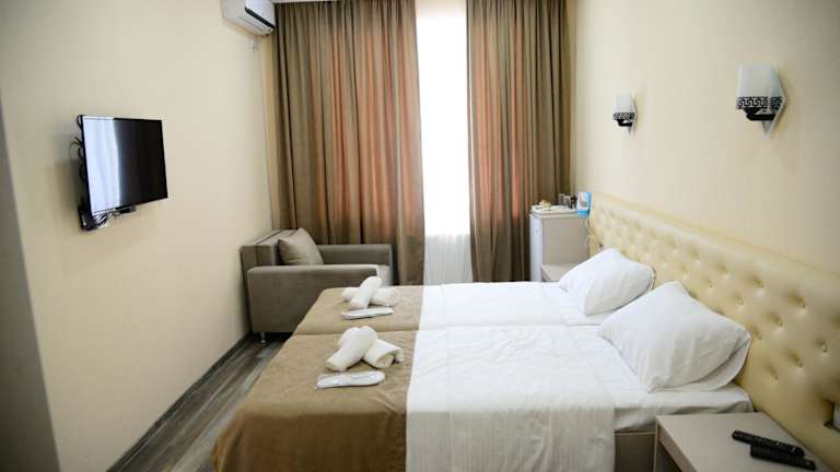 Die Zimmer im Hotel New Avlabari sind mit Klimaanlage, einem Schreibtisch, einem Flachbild-TV und einem eigenen Badezimmer ausgestattet. Jedes Zimmer verfügt über eine Terrasse mit Stadtblick und ist mit Kleiderschrank, Kaffeemaschine, Bettwäsche und Handtüchern versehen.