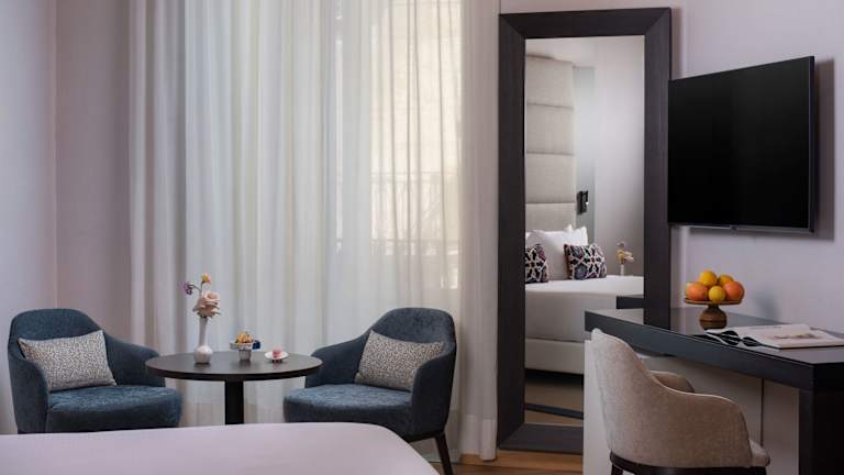 Das Hotel Palazzo Sitano verfügt über insgesamt 86 Zimmer, die stilvoll eingerichtet und mit modernen Annehmlichkeiten ausgestattet sind. Die Doppelzimmer bieten eine Größe von ca. 22 m² und verfügen über ein kombiniertes Wohn-/Schlafzimmer. Die Deluxe-Zimmer sind etwas größer und bieten ca. 27 m² Wohnfläche sowie einen Balkon. Die Juniorsuiten sind ca. 31 m² groß und bieten einen Blick auf die Straße und die Stadt. Die Suiten sind mit ca. 37 m² noch geräumiger und verfügen über einen Balkon oder eine Terrasse. Alle Zimmer sind klimatisiert und verfügen über einen Flachbildfernseher, eine Minibar und WLAN-Zugang.