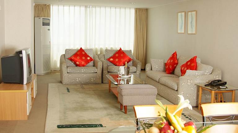 Die gastronomischen Angebote umfassen ein Nichtraucherrestaurant, ein Café und eine Bar. Gäste können zwischen Übernachtung mit Frühstück, einem kontinentalen Frühstücksbuffet sowie verschiedenen Mittags- und Abendverpflegungen wählen, einschliesslich Buffet und à la carte. Traditionelle asiatische Küche und Diätgerichte stehen ebenfalls zur Auswahl.