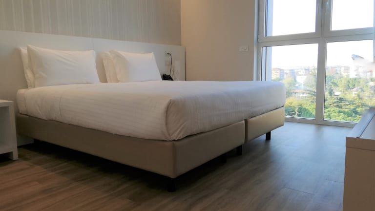 hanks to the recent move to the brand-new wing, the Novo Hotel Rossi now offers 50 rooms, double and triple, and completely new, bright and welcoming spaces, like the staff, always happy to assist you during your stay. Close to the train station, to the FLIXBUS stop, to the historical center and to the Verona Fiere exhibition center, we are easy to reach and provided with a very convenient garage. Sweet, salty, energetic and attentive to intolerances, our breakfast tries to meet the taste of everyone. It can be served safely in the cozy dining room or even take away, while for the early birds we also offer an early breakfast service. You can order your home delivery meals directly by our reception, opened H 24. We offer our guests free luggage storage service and bike rental so that they can make the most of their stay in the city.