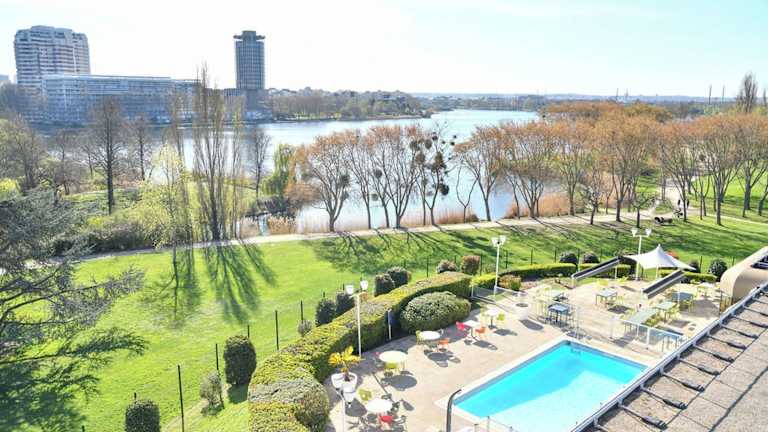 Das Hotel liegt am Ufer des Sees Créteil, inmitten eines Erholungsgebietes. Paris ist bequem über die U-Bahn-Linie 8 erreichbar, was die Unterkunft sowohl für Geschäftsreisende als auch für Familien ideal macht. Die Umgebung bietet zahlreiche Freizeitmöglichkeiten und der Naturschutzpark Europarc ist nur 10 Minuten mit dem Auto entfernt.