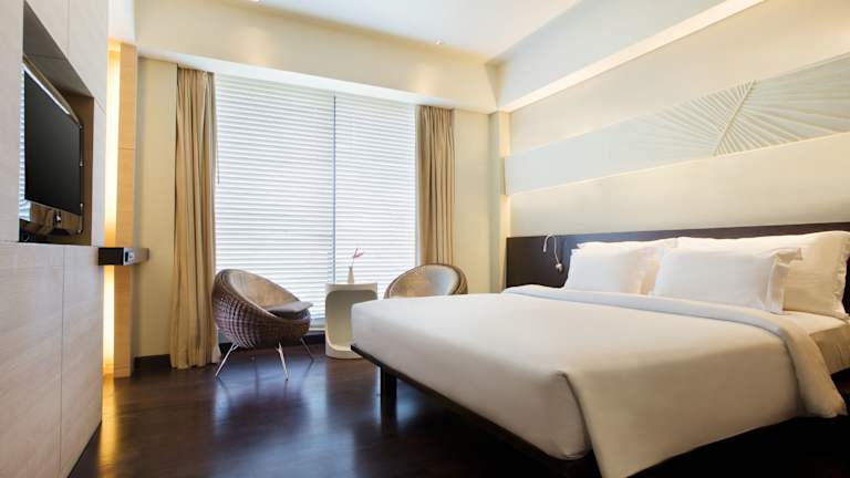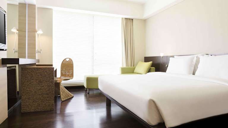 In den modernen Zimmern gibt es eine Klimaanlage, die gegen Gebühr zu haben ist, sowie Zustellbetten auf Anfrage. Ausserdem verfügen die Zimmer über einen Safe, eine Minibar, einen Schreibtisch, ein Minikühlschrank und eine Tee-/Kaffeemaschine. Das Badezimmer ist mit einer Dusche oder Badewanne ausgestattet und bietet Kosmetikartikel. Rollstuhlgerechte Zimmer sind ebenfalls verfügbar.