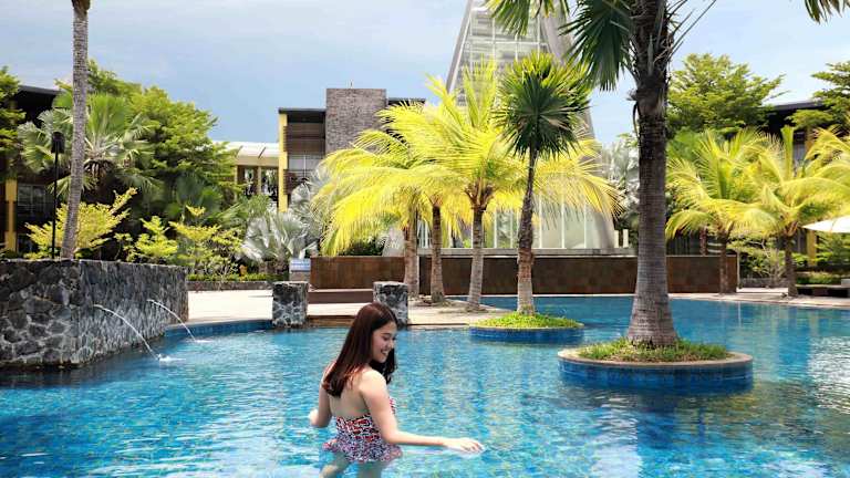 Im gastronomischen Bereich des Hotels stehen verschiedene Einrichtungen zur Verfügung, darunter ein Restaurant, ein Speiseraum, ein Café und eine Bar. Ein reichhaltiges Frühstück sorgt für den perfekten Start in den Tag, während im Restaurant internationale und indonesische Gerichte sowie chinesische Speisen serviert werden. Snacks und Getränke sind in der Bar und am Pool erhältlich. Für Kinder werden ebenfalls spezielle Menüs zubereitet.