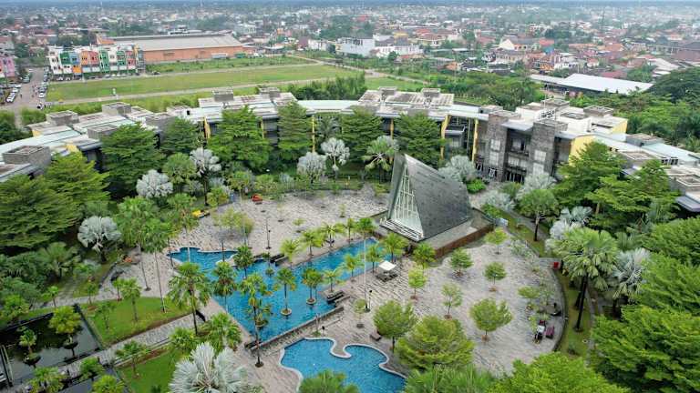 Das Hotel befindet sich direkt im Zentrum von Palembang und ist nur 5 Fahrminuten vom Einkaufszentrum Palembang Mega Mall entfernt. Der Flughafen Sultan Mahmud Badaruddin ist 15 Fahrminuten entfernt, während die Ampera-Brücke nach 20 Minuten erreichbar ist. Die Lage ermöglicht den Gästen einfachen Zugang zu verschiedenen Attraktionen der Umgebung.