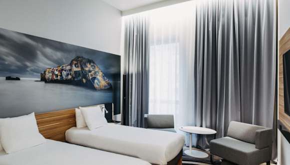 Die Zimmer sind modern und schallisoliert, ausgestattet mit Klimaanlage, Heizung, Doppelbett, Minibar, Schreibtisch, Kühlschrank, Telefon, TV-Gerät, Radio, Wecker und kostenlosem Wifi. Im Badezimmer befindet sich eine Dusche sowie ein Haartrockner. Einige Zimmer bieten sogar einen Blick auf die Start- und Landebahn des Flughafens. Auch rollstuhlgerechte Zimmer mit barrierefreiem Badezimmer sind verfügbar.