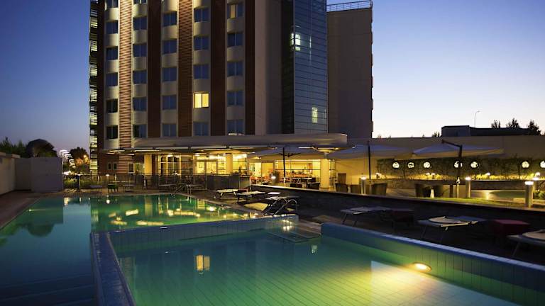 Das Hotel Novotel Salerno Est Arechi bietet eine moderne und angenehme Unterkunft über 6 Etagen. Es verfügt über 4 Suiten sowie 232 Einzel- und Doppelzimmer, die über einen Aufzug zugänglich sind. Zu den Annehmlichkeiten gehören eine Gepäckaufbewahrung, ein Safe, ein schöner Garten, ein Spielplatz, ein Zeitungskiosk, ein TV-Raum, ein Spielzimmer und eine Bibliothek. Gäste können in einer Garage oder auf einem Parkplatz parkieren.