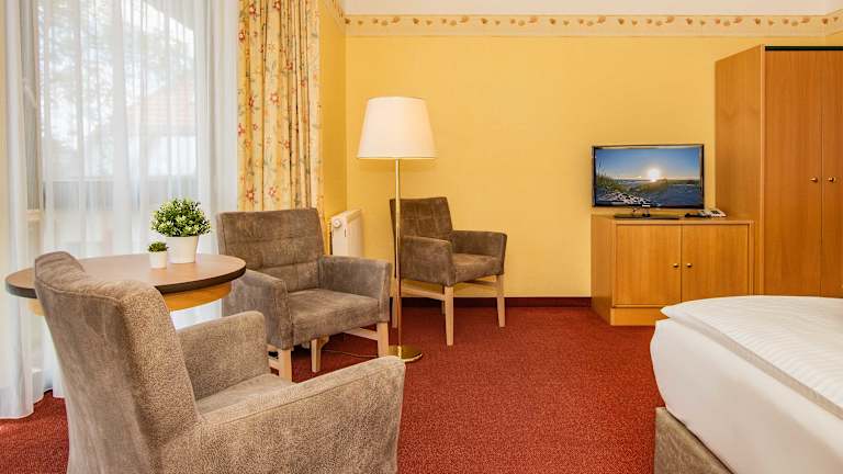 großzügige Doppelzimmer mit Vorflur und Bad (ca. 23 - 30m²) schöne Einzelzimmer mit Vorflur und Bad (ca. 23 m²) Maisonetten mit 2 getrennten Schlafzimmern, Vorflur und Bad, z.T mit Erker (ca. 50m²) Suiten mit Wohn- und Schlafraum, Bad z.T. mit Wanne (ca. 33m²) Ferienwohnung mit Wohnraum, 2 Schlafzimmern, Küche und Bad (ca. 60m²) Die 14 Zimmer und Suiten sind komfortabel eingerichtet und ausgestattet mit: Dusche (in den Suiten Wanne), WC, Fön, Telefon, kostenloses W-LAN, 32"LED-Sat-TV, SAT-Radio, kostenloser Zimmersafe Unser Haus ist ein rauchfreies Hotel, Raucher gehen in den Gartenpavillon.