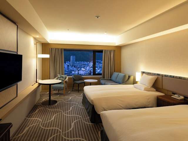 Die Zimmer im Hotel Okura Kobe sind im westlichen Stil eingerichtet und bieten einen komfortablen Rückzugsort für die Gäste. Jedes Zimmer ist klimatisiert und beheizt und verfügt über Annehmlichkeiten wie einen Kühlschrank und einen Flachbild-Sat-TV. Das eigene Badezimmer ist mit einer Badewanne und einem Haartrockner ausgestattet. Auf Anfrage steht den Gästen ein Luftreiniger im Zimmer zur Verfügung.