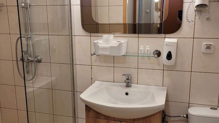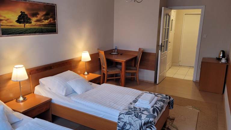 Die Zimmer im Hotel Olimp sind mit einem Kleiderschrank, einem Flachbild-TV, einem eigenen Badezimmer, Bettwäsche und Handtüchern ausgestattet. Jede Wohneinheit verfügt zudem über einen Kühlschrank.