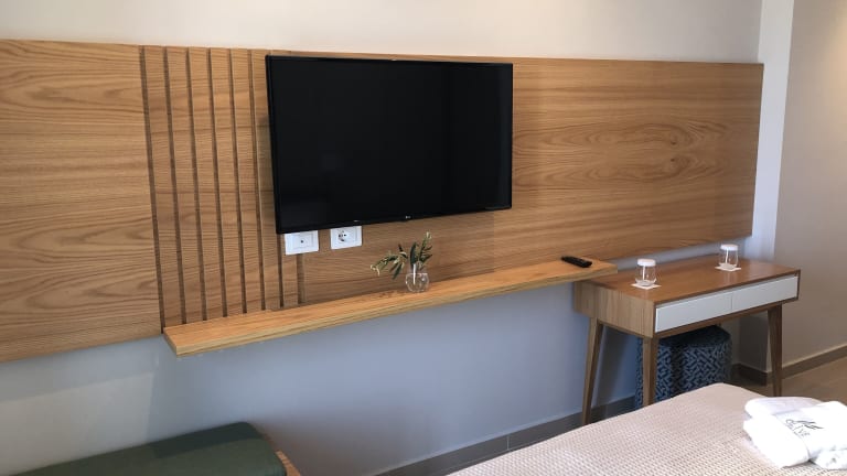 Die klimatisierten Zimmer des Hotels sind mit einem Schreibtisch, einem Safe, einem Flachbild-TV, einem Balkon und einem eigenen Badezimmer mit Bidet ausgestattet. Jedes Zimmer verfügt über Bettwäsche und Handtücher.