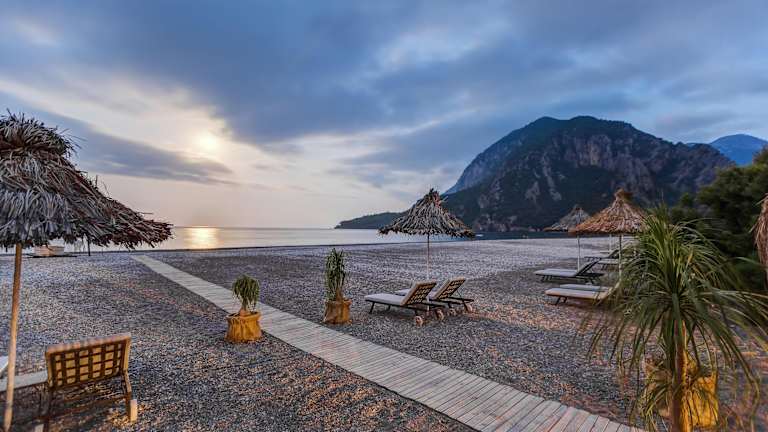 Die Olympos Lodge befindet sich direkt am Mittelmeerstrand in Cirali, Kemer, Antalya. Die Umgebung ist geprägt von grünen Gärten und liegt in der Nähe der antiken lykischen Stadt Olympos, welche nur einen 10-minütigen Spaziergang entfernt ist. Die weitere antike Stadt Phaselis erreichen Sie nach 25 km. Der Flughafen Antalya ist 90 km entfernt und bietet eine gute Erreichbarkeit.