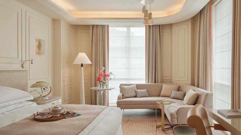 Die Zimmer sind klimatisiert und mit einem Safe, Minibar, Schreibtisch sowie einer Kochnische ausgestattet, die über Kühlschrank und Teezubereitungsmöglichkeiten verfügt. Zur Ausstattung zählen ebenfalls ein TV-Gerät, ein DVD-Player sowie kostenfreies WLAN. Die Badezimmer bieten Dusche und Badewanne, Haartrockner und Kosmetikartikel. Zudem sind Kinderbetten erhältlich, und es gibt spezielle Angebote für Nichtraucher- sowie Raucherzimmer.