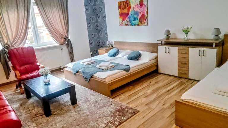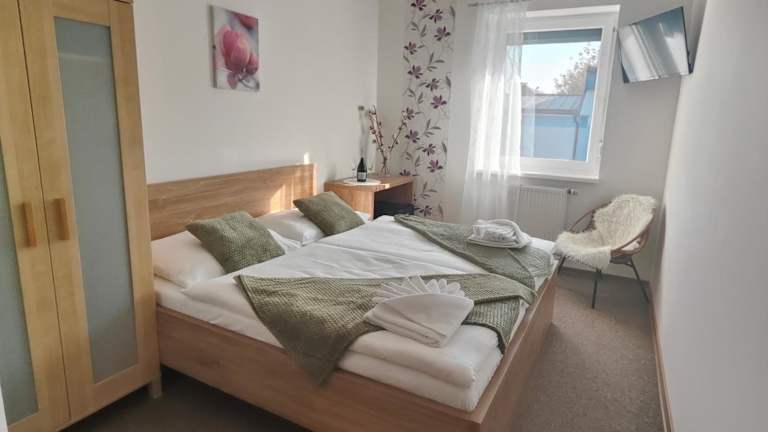 Das Hotel Orlan liegt in einem ruhigen Wohngebiet von Bratislava und ist nur 3 km vom Flughafen und dem Einkaufszentrum Avion entfernt. Die Autobahnausfahrt Bratislava-Ružinov der Autobahn D1 ist nur 300 m entfernt, was das Hotel leicht mit dem Auto erreichbar macht. Die Lage ermöglicht es den Gästen, schnell und bequem zu wichtigen Zielen in der Stadt zu gelangen.