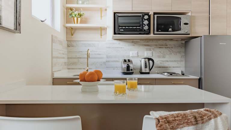 Die Zimmer sind komfortabel eingerichtet und verfügen über eine Klimaanlage, ein Doppelbett sowie ein Sofabett. Weitere Annehmlichkeiten umfassen einen Safe, eine Minibar, eine Kochnische mit Kühlschrank und Mikrowelle sowie einen Flachbild-TV. Im Badezimmer sind eine Dusche sowie kostenfreie Pflegeprodukte vorhanden.