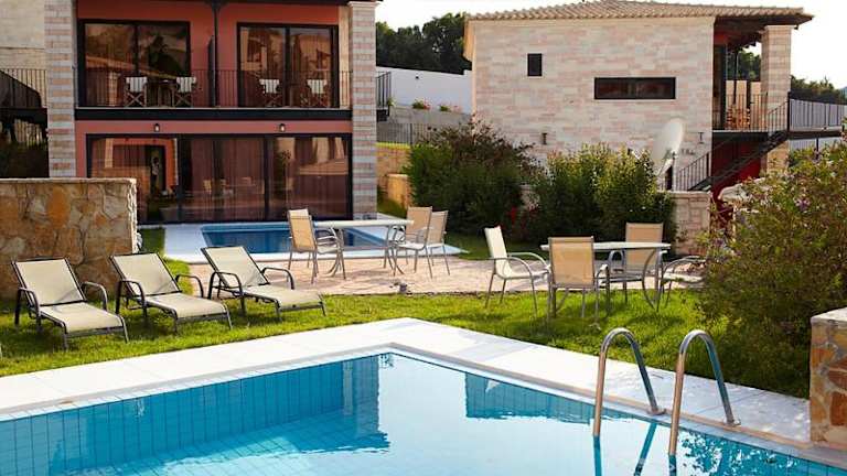 Die Zimmer sind sorgfältig möbliert und verfügen über private, möblierte Balkone mit Meer- und Gartenblick. Einige Zimmer haben auch eine kleine Küche. Zu den Annehmlichkeiten gehören Klimaanlage, Plasma-TV und kostenloses Wifi.