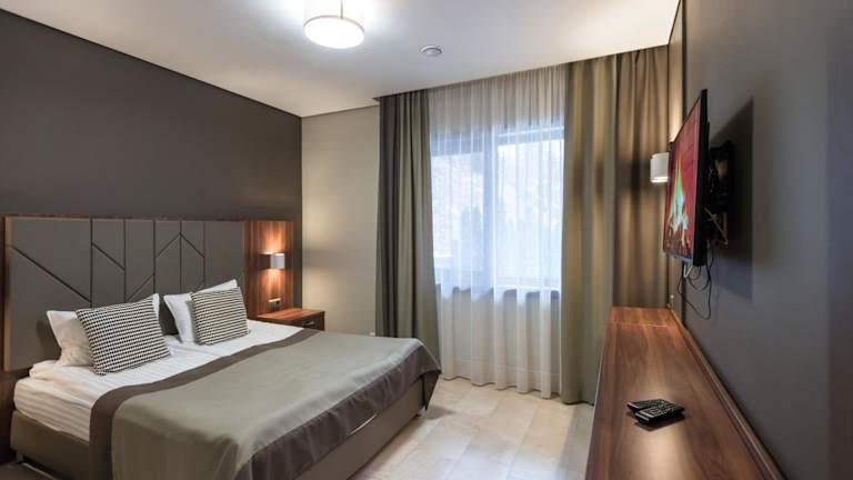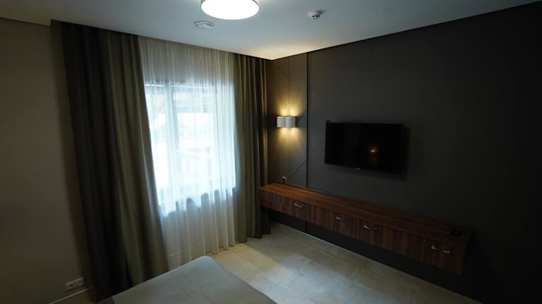 Die Zimmer im Ozero Vita Hotel sind komfortabel eingerichtet und verfügen über einen Flachbild-Sat-TV und kostenfreie Pflegeprodukte. Die Unterkunft bietet auch Annehmlichkeiten wie eine Sauna, einen Außenpool und einen Fahrradverleih. Grillmöglichkeiten, ein Kinderspielplatz, eine Bar und ein Shuttleservice stehen ebenfalls zur Verfügung. Das freundliche Personal an der 24-Stunden-Rezeption steht Ihnen jederzeit zur Verfügung.