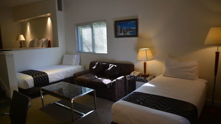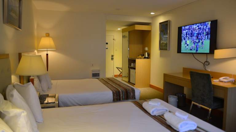 Die Zimmer sind mit einer Klimaanlage, Heizung, einem Doppelbett, Queensize- oder Kingsize-Bett ausgestattet. Zustellbetten sind auf Anfrage erhältlich. Jedes Zimmer verfügt über einen Safe, eine Minibar, einen Schreibtisch, Kühlschrank, Mikrowelle sowie Tee- und Kaffeemaschine. Ein direkt wählbares Telefon, ein TV-Gerät mit Kabel- oder Satellitenempfang, ein Radio und kostenloses Wifi gehören ebenfalls zur Ausstattung. Zudem sind rollstuhlgerechte Zimmer mit barrierefreiem Badezimmer buchbar.