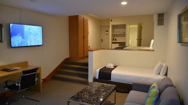 Das Hotel befindet sich ungefähr 5 Gehminuten vom Stadtzentrum Paihias entfernt. Die Entfernung zum Strand beträgt ca. 150 m. In der näheren Umgebung liegen Sehenswürdigkeiten wie das Kauri Museum, der Wenderholm Regional Park, die Waipu Höhlen und die McClelland Gallerien. Weitere Entfernungen sind ca. 25 km zum Flughafen und 3 km zum Golfplatz.