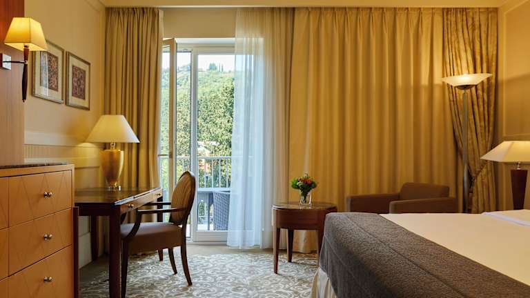 Portorož – der Hafen der Rose – lockt seit vielen Jahrhunderten mit therapeutischen Bädern und Spaß. Bereits im 13. Jahrhundert behandelten Benediktiner Mönche ihre Besucher mit Meerwasser und Salzen. Im 19. Jahrhundert kamen vor allem der europäische Adel und das gehobene Bürgertum in den Genuss der heilenden Wirkung. Unsere 164 Zimmer und 17 Suiten reflektieren die sagenumworbene Geschichte des Palace Portorož und bieten imposante Ausblicke auf die Adria und die istrische Landschaft. Tauchen Sie ein in die Welt des venezianischen Lebensgefühls und in die Opulenz der Wiener Habsburger.