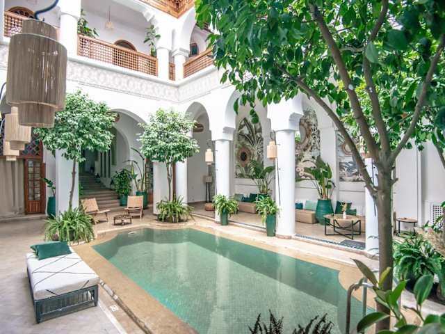 Das Riad Palais Calipau bietet eine traditionelle Atmosphäre und elegantes Design im marokkanischen Stil. Die Unterkunft umfasst 3 Junior-Suiten, 12 Suiten und 2 Doppelzimmer, ideal für einen entspannten Aufenthalt. Zu den Einrichtungen zählen ein Garten, ein TV-Raum, ein Massagezimmer, ein Hamam und ein beheizter Innenpool.