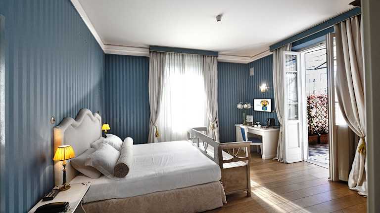 Die Zimmer im Palazzo Guiscardo sind individuell gestaltet und verfügen über eine Klimaanlage, ein Kingsizebett sowie ein Sofabett. Zur Ausstattung gehören eine Minibar, ein Safe, ein Schreibtisch, ein Telefon, Sat-TV sowie kostenfreies Wifi. Die Badezimmer sind entweder mit einem Whirlpool oder einer Dusche mit Dampffunktion ausgestattet. Zusätzliche Annehmlichkeiten sind Hausschuhe und Kosmetikartikel. Das Hotel bietet auch die Möglichkeit, rollstuhlgerechte Zimmer zu buchen. Familien- und Nichtraucherzimmer sind ebenfalls verfügbar.