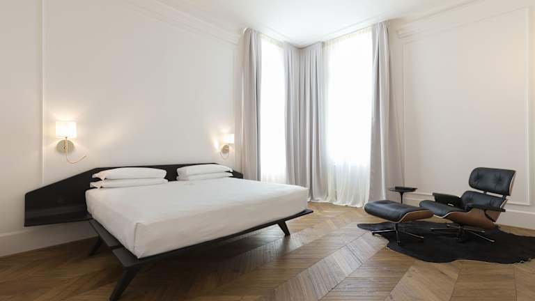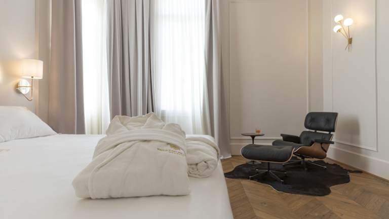 In den Zimmern stehen Klimaanlage, individuell steuerbare Heizung, eine Minibar, ein Safe und ein Schreibtisch zur Verfügung. Einige Zimmer haben eine Terrasse oder bieten Blick auf den Kanal. Moderne Annehmlichkeiten wie ein Fernseher mit Satellitenempfang, ein direkt wählbares Telefon und kostenfreies Wifi sind vorhanden. Die Badezimmer sind mit Dusche, Badewanne und Bidet ausgestattet und bieten Haartrockner sowie Bademäntel. Hausschuhe und eine Auswahl an Kosmetikartikeln ergänzen die Ausstattung.