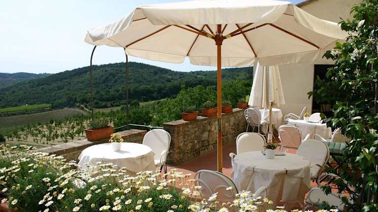 Es wird täglich ein nahrhaftes Frühstücksbuffet mit süssen und herzhaften Speisen serviert. Eine Bar ist ebenfalls vorhanden, in der Gäste im Sommer auf der Terrasse mit Blick auf den Pool und das Chianti-Tal einen Drink geniessen können.