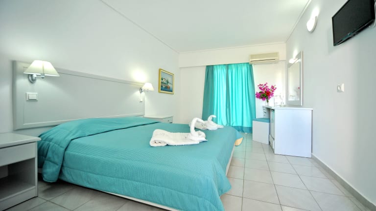 Die Zimmer im Palm Beach Hotel - Adults only sind modern gestaltet und verfügen über einen Balkon mit Meerblick. Jedes Zimmer verfügt über ein Radio, einen LED-TV und ein eigenes Badezimmer mit Dusche.