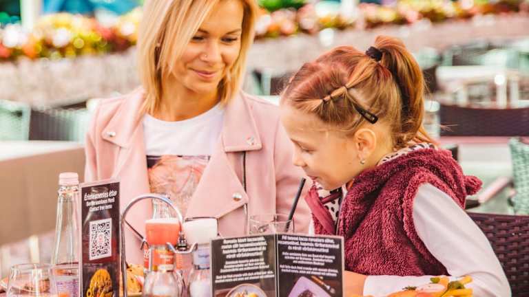 Im Restaurant des Hotels wird ungarische Küche serviert. Es gibt auch eine Bar sowie eine Terrasse, wo Gäste entspannen können.