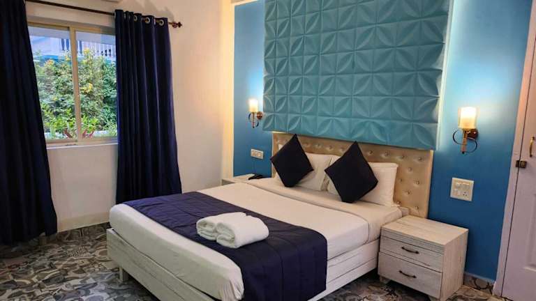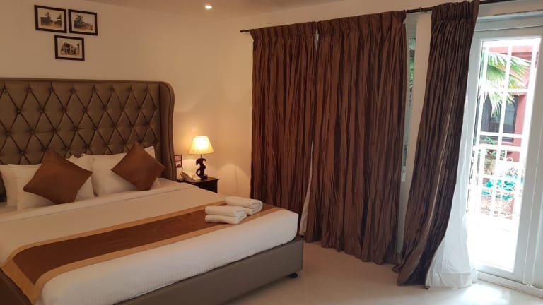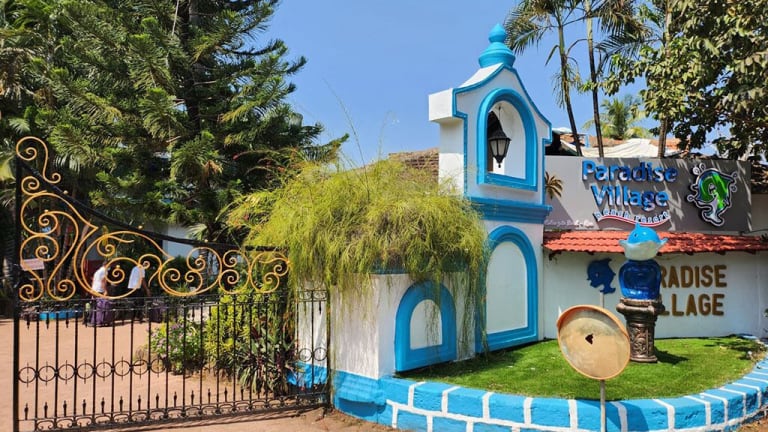 Das Paradise Village Beach Resort ist ein mediterran gestaltetes Hotel direkt am Strand von Calangute. Hier können Sie einen entspannten Urlaub in einer malerischen Umgebung genießen. Das Resort bietet eine Vielzahl von Annehmlichkeiten wie einen Außenpool, Ayurveda-Massagen und einen Fitnessraum. Die Zimmer sind komfortabel eingerichtet und verfügen über einen eigenen Balkon, kostenloses WLAN und alle notwendigen Annehmlichkeiten. Das Resort bietet auch kostenlose Parkplätze, ein Businesscenter und Tagungsräume. Genießen Sie köstliche Gerichte im Restaurant und entspannen Sie bei einem Getränk an der Bar.