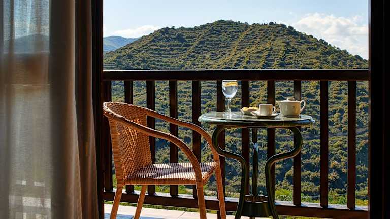 Die Unterkunft verfügt über 66 Nichtraucherzimmer, die über Klimaanlage, individuell steuerbare Heizung sowie Balkon oder Terrasse mit Bergblick verfügen. Zur Ausstattung der Zimmer gehören Doppelbetten, ein Sofabett, ein Safe, eine Minibar und ein Schreibtisch. Des Weiteren sind ein Telefon, ein TV mit Satellitenempfang und kostenfreies Wifi vorhanden. Die Badezimmer sind mit Dusche, Badewanne und Bidet ausgestattet.