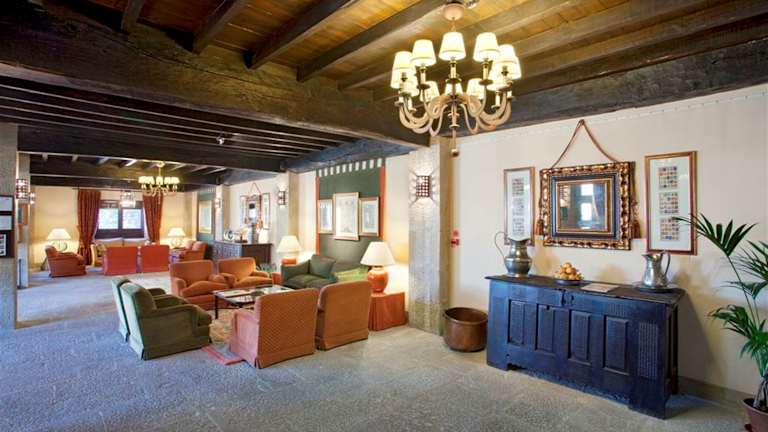 Das Hotel liegt in der mittelalterlichen Stadt Sos del Rey Católico, die für ihre künstlerische und historische Bedeutung bekannt ist. Die Umgebung ist von den Ausläufern der aragonesischen und navarresischen Pyrenäen geprägt. Nur etwa 200 m vom Hotel entfernt befindet sich das Stadtzentrum. Der Flughafen von Zaragoza liegt ca. 120 km entfernt.